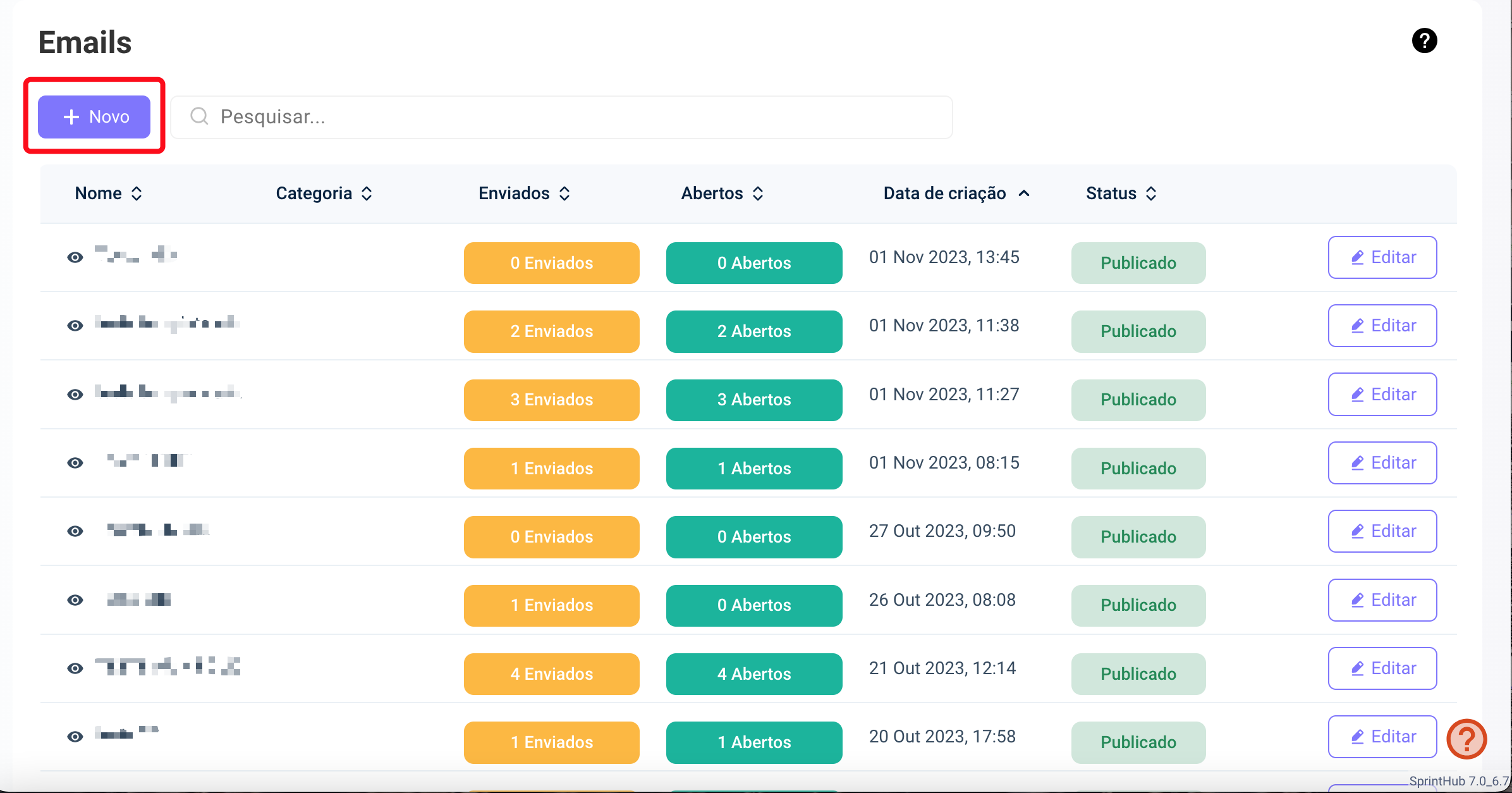 Clique em '**Novo**';
