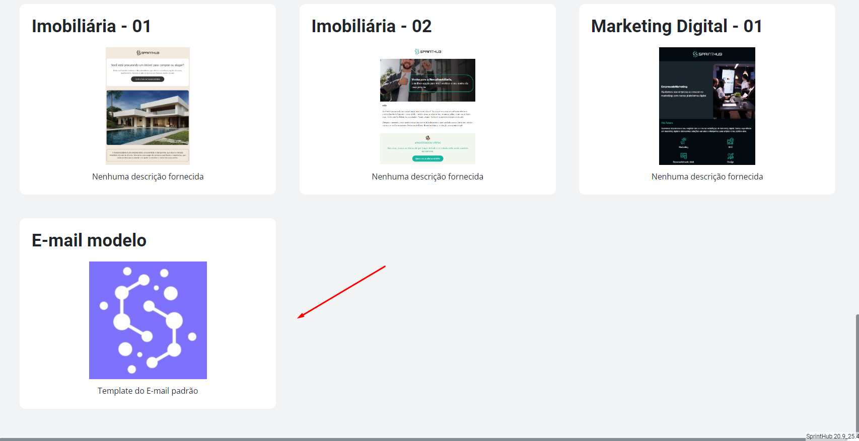 * Clique no nome do e-mail que deseja fazer o Template;