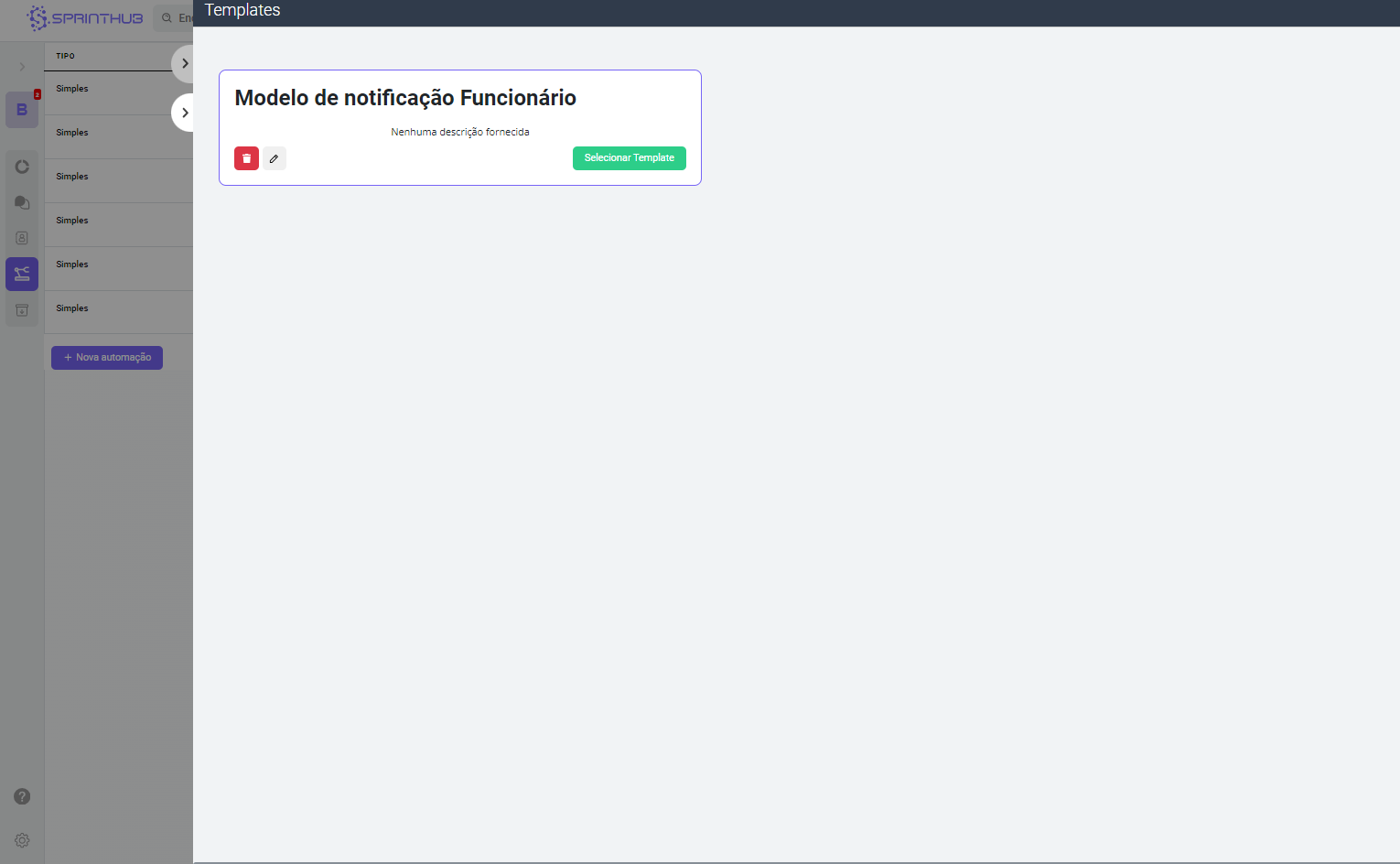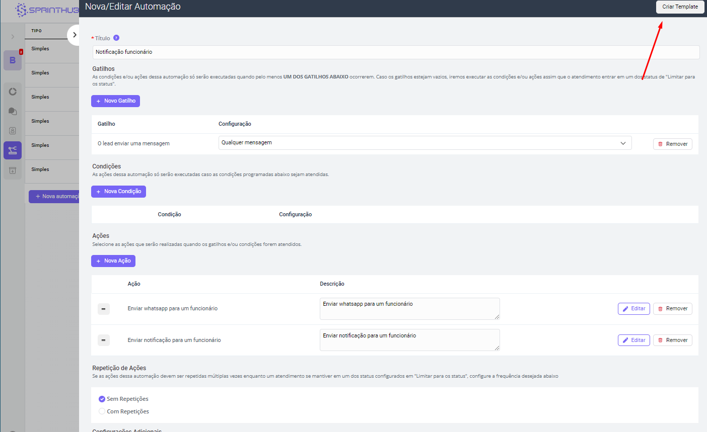**Ao abrir a tela de automação, logo acima terá o botão de criar um template:**