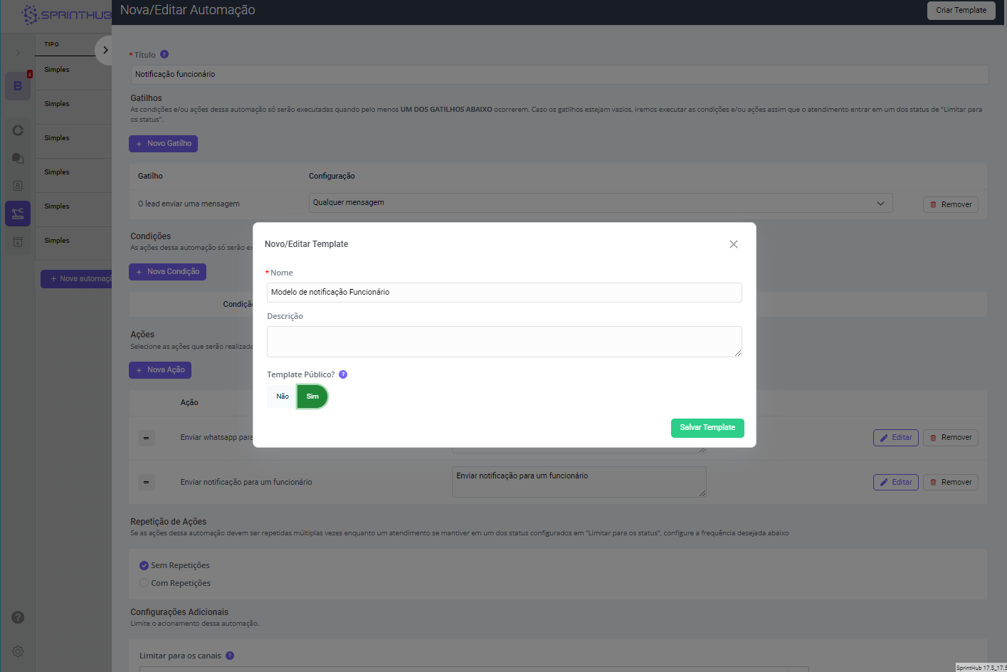 Se sim, todo e qualquer usuário do seu ambiente Sprinthub pode acessar, com o não você precisar selecionar quem pode ver o template.