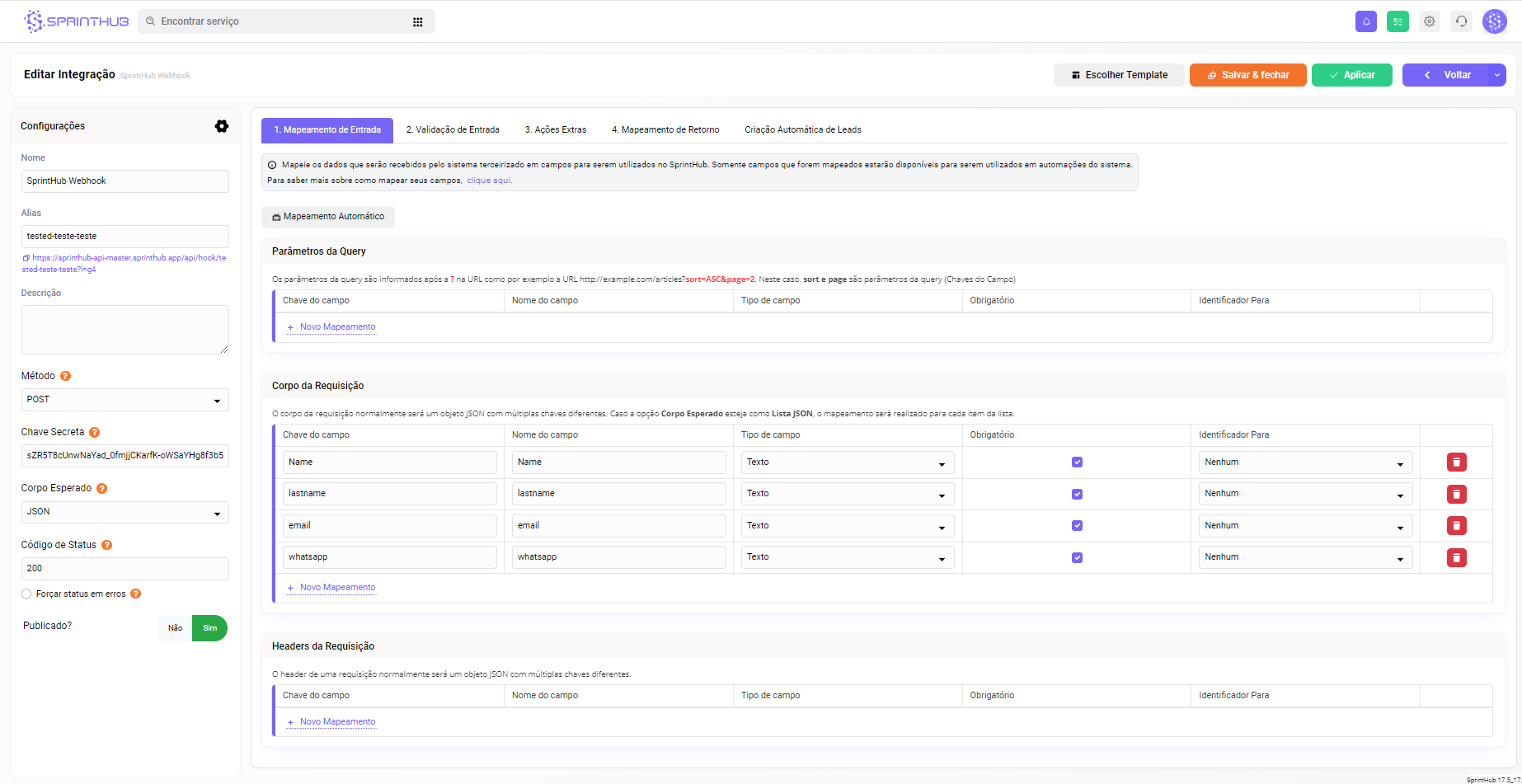# Webhook Integrado - Template