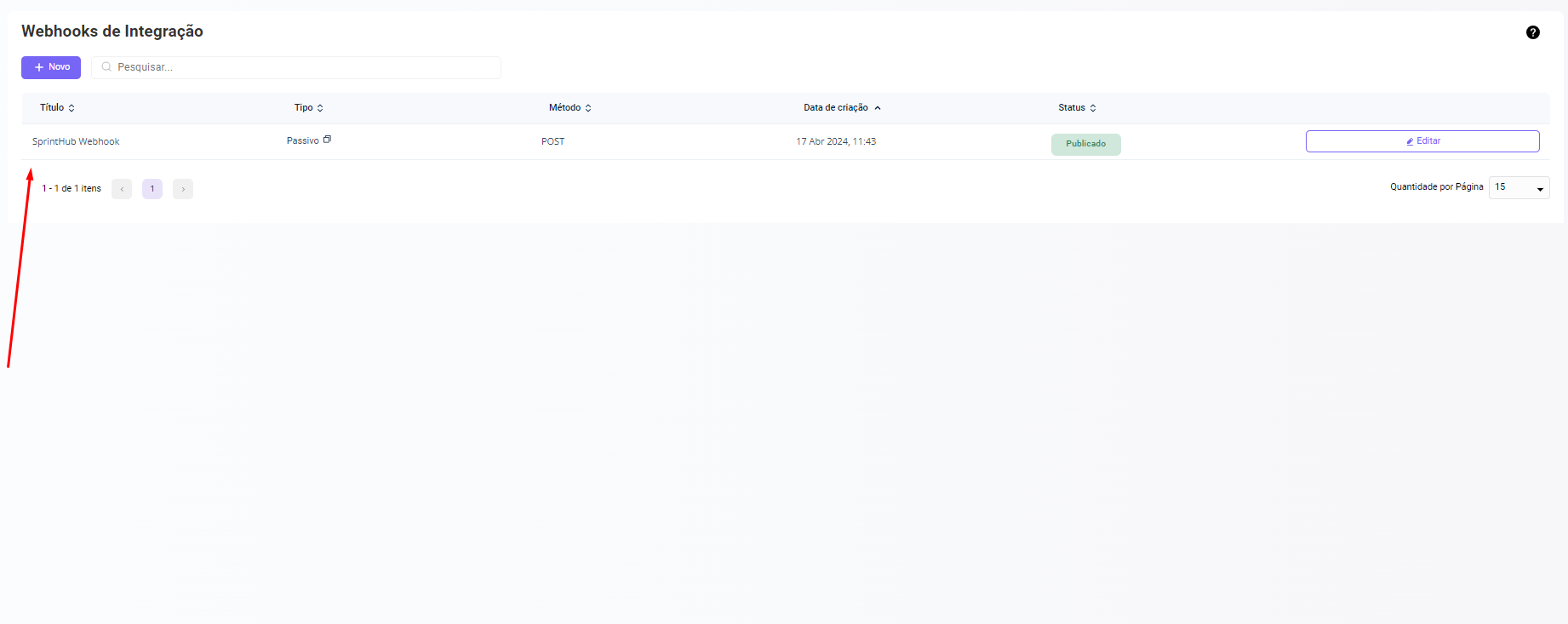 #### Com o webhook já criado, volte para a tela inicial