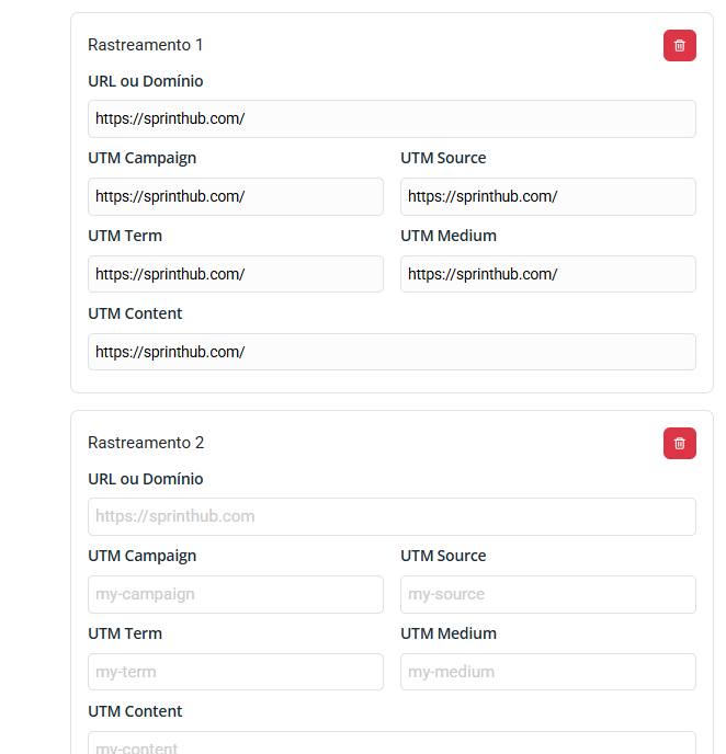 Outro passo importante, é o rastreamento através das tags UTMs e URL de destino de uma página rastreada da Sprinthub.