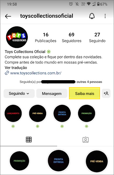 &#x20;No caso do *exemplo* que elaboramos, utilizamos um formulário padrão criado diretamente pelo **aplicativo do Instagram**. Nele, adicionamos o botão '**Saiba mais**' ao perfil, e ao ser clicado, o cliente é direcionado ao formulário.