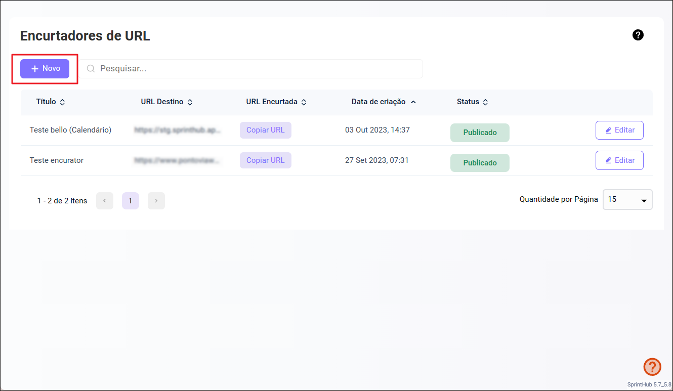 **URL original**: Insira a URL que o lead será redirecionado após clicar no encurtador.