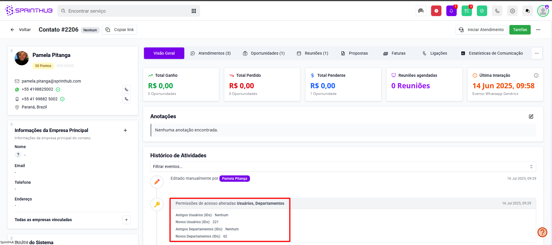 # Histórico de Contatos Agora Exibe Alterações de Permissão de Acesso