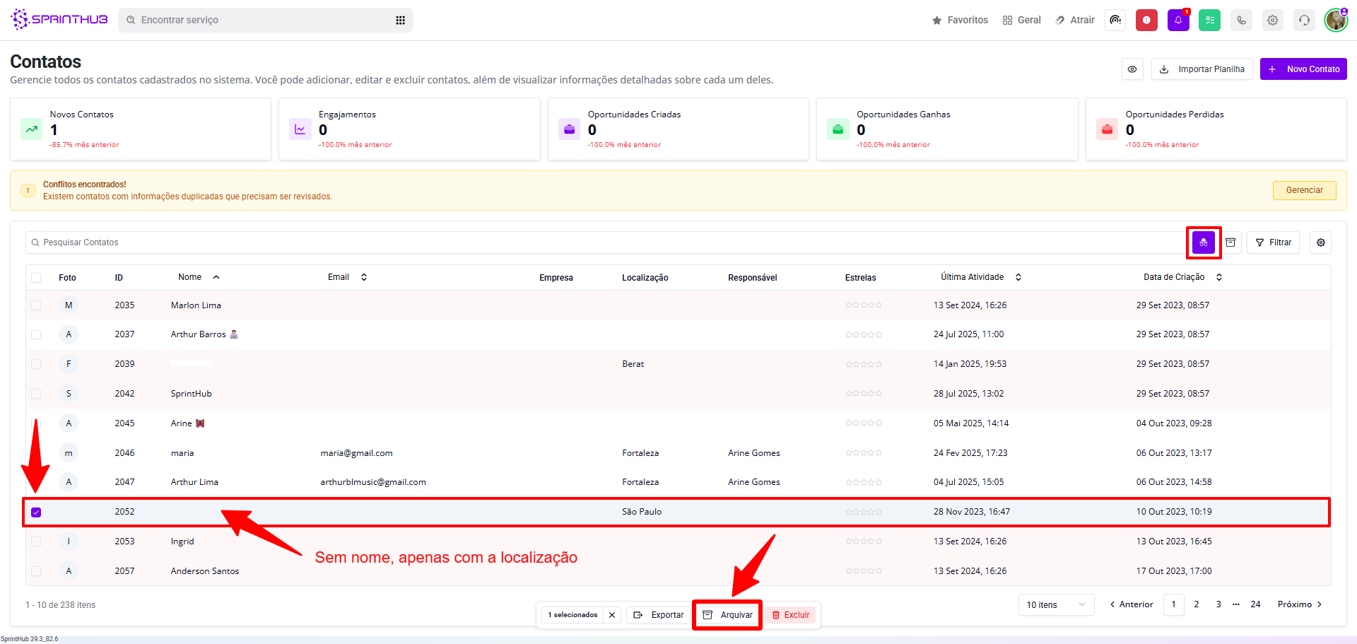 * Selecione este lead, e clique em "Arquivar" ou "Excluir"
