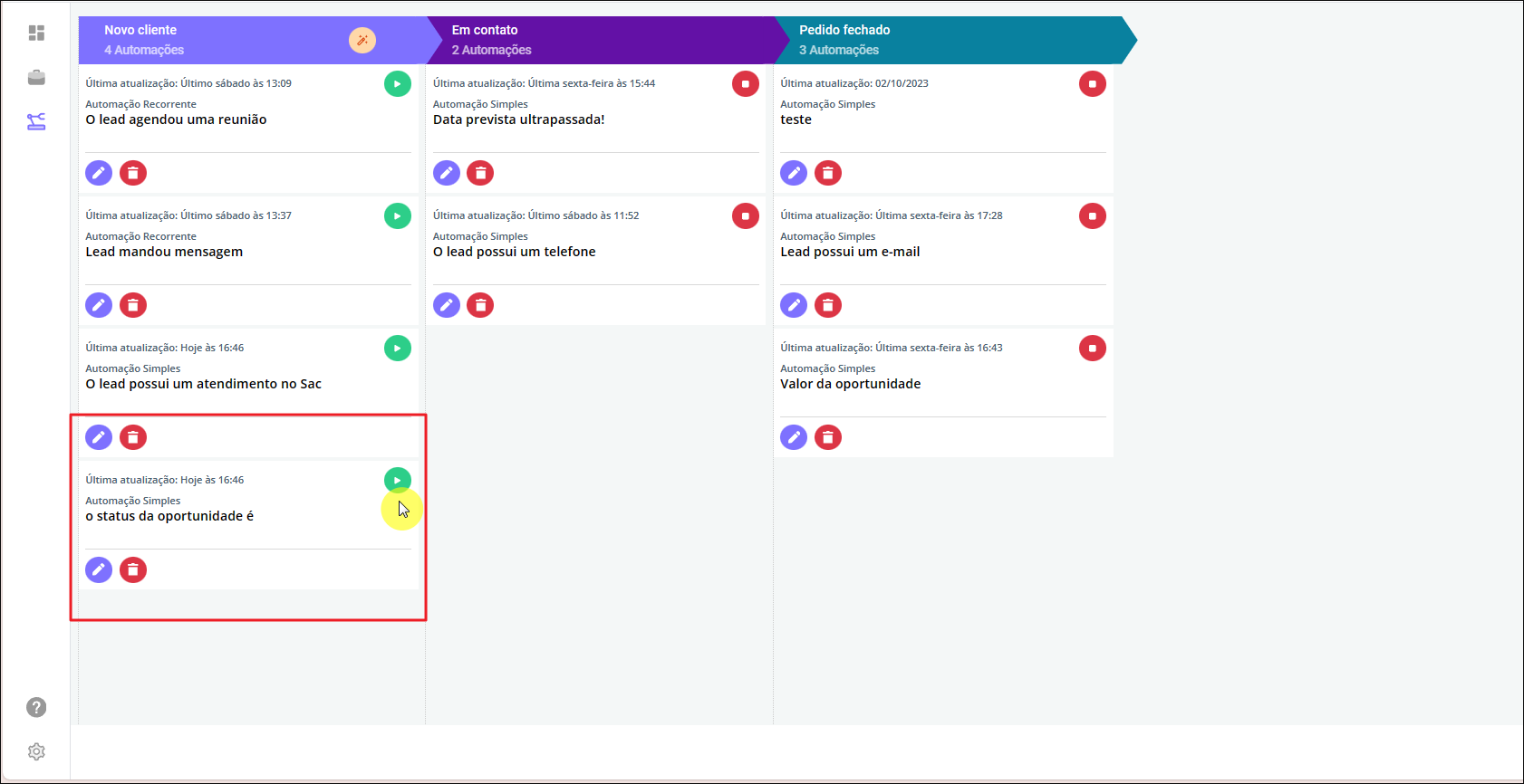 Após salvar sua automação, clique no ícone de '<mark style="color:green;">**Play**</mark>' para ativa-la.&#x20;