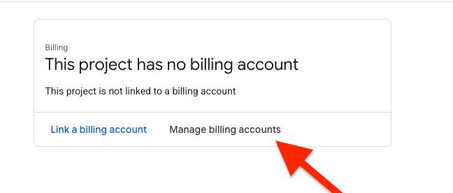 * Se já possuir contas de billing, clique em **Manage billing accounts** e depois em **Link a billing account**.