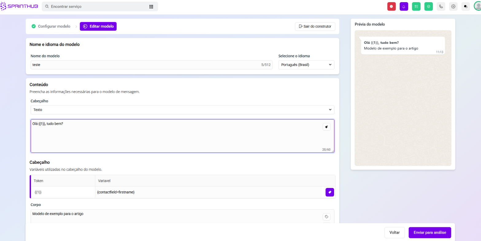 A criação de templates de mensagens é uma etapa fundamental para automatizar e agilizar a comunicação com seus leads e clientes. Na SprintHub, esse processo é simples e intuitivo, permitindo personalização completa e o uso de variáveis dinâmicas para mensagens mais humanizadas.