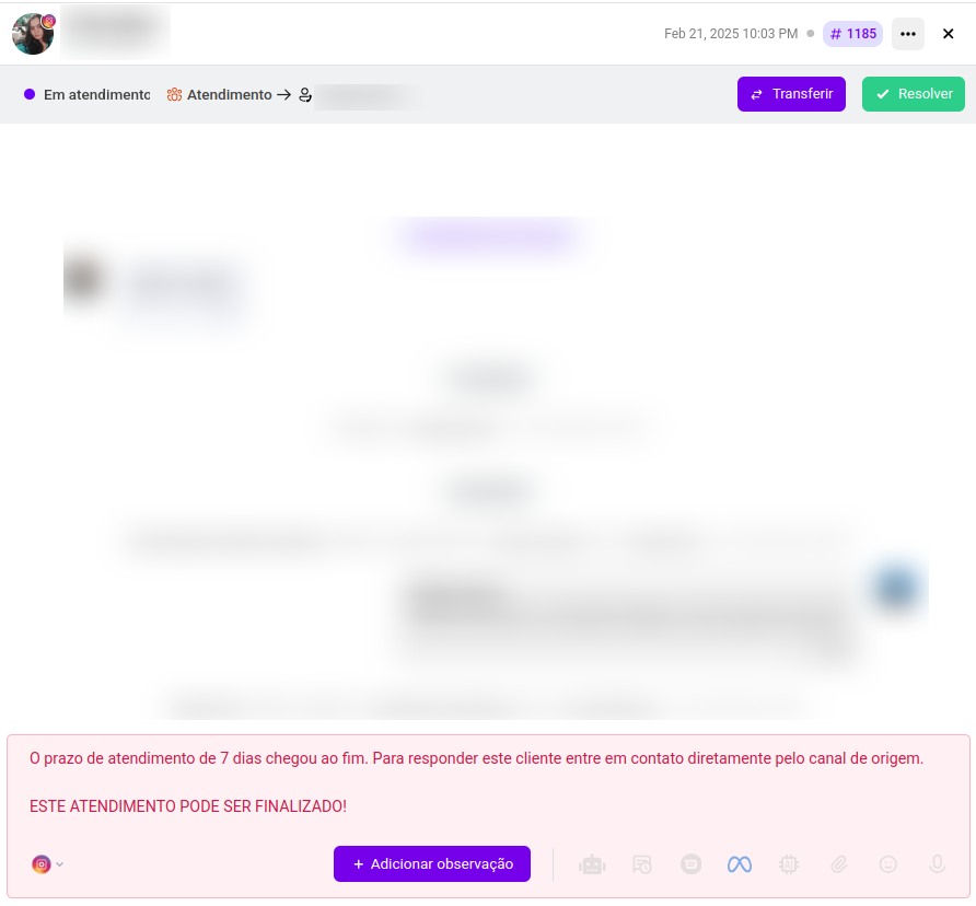 Reinício do atendimento: O lead precisará enviar uma nova mensagem para que a conversa seja reaberta.
