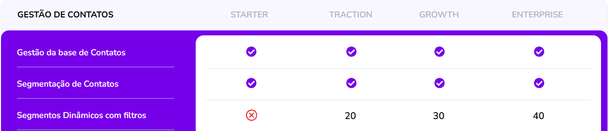 Se precisar de mais segmentos dinâmicos, avalie o upgrade do seu plano ou otimize os segmentos já existentes para manter sua operação organizada e escalável.