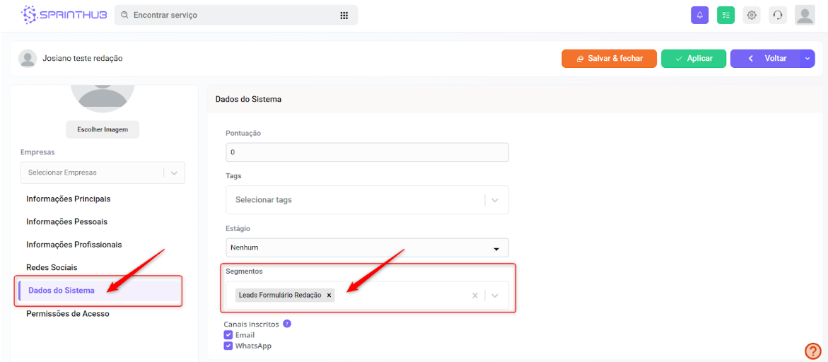 Em seguida acesse Dados do Sistema, e exclua o segmento. Clique em Salvar e fechar.<br>