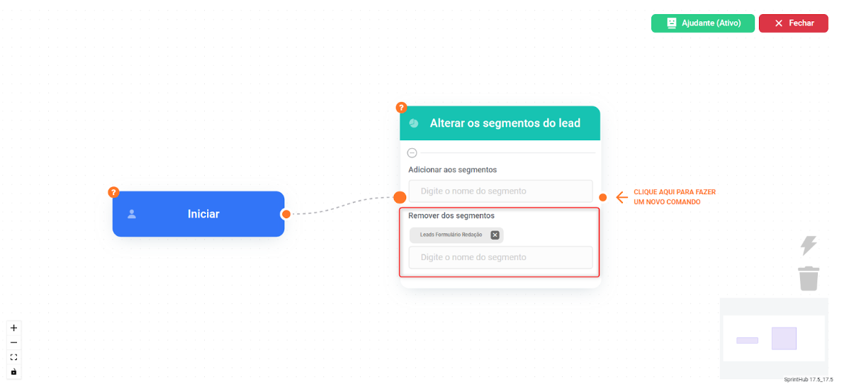 **2 - Neste segundo caso, vamos excluir retirar o lead do segmento por meio do Fluxo de Automação.**&#x20;